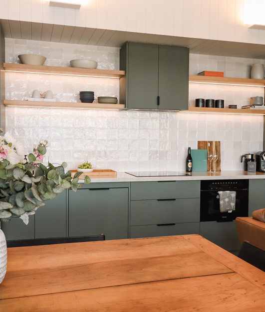 As the day unfolds, meals move outdoors – shared around the table, cooked on the gas BBQ. When temperatures drop, the outdoor strip heater keeps the space inviting long after sunset.