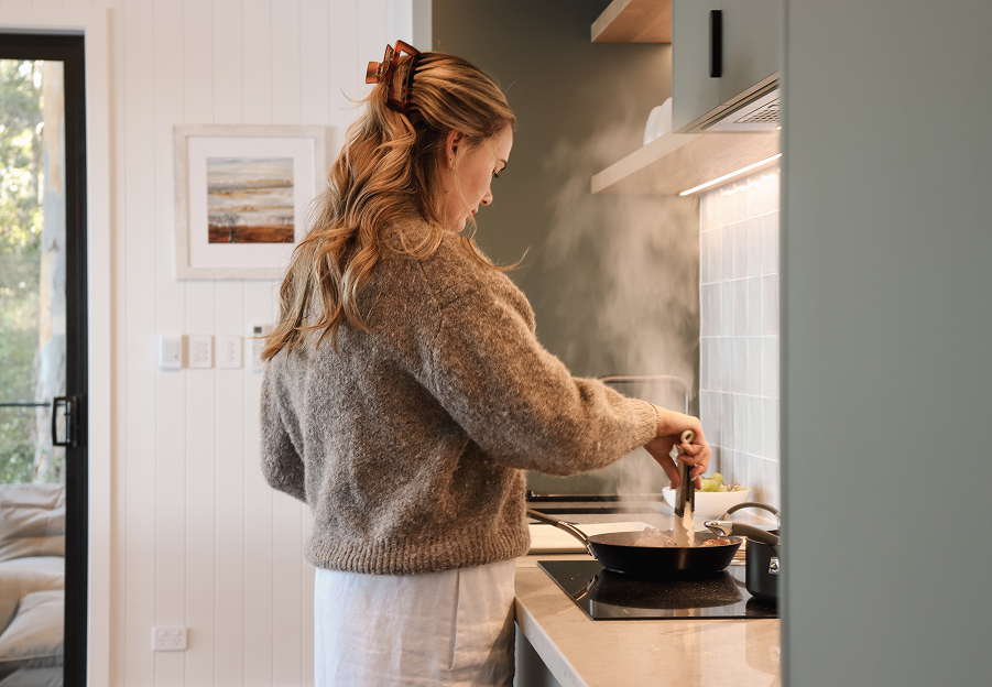 Designed by Schlager Architects to take full advantage of the majestic Karri forest and mesmerising water views, the Cabin reflects the Scandinavian ethos of simplicity and connection to nature. Here the senses are calmed by the rhythm of the Southern Ocean and the soft scent of forest.